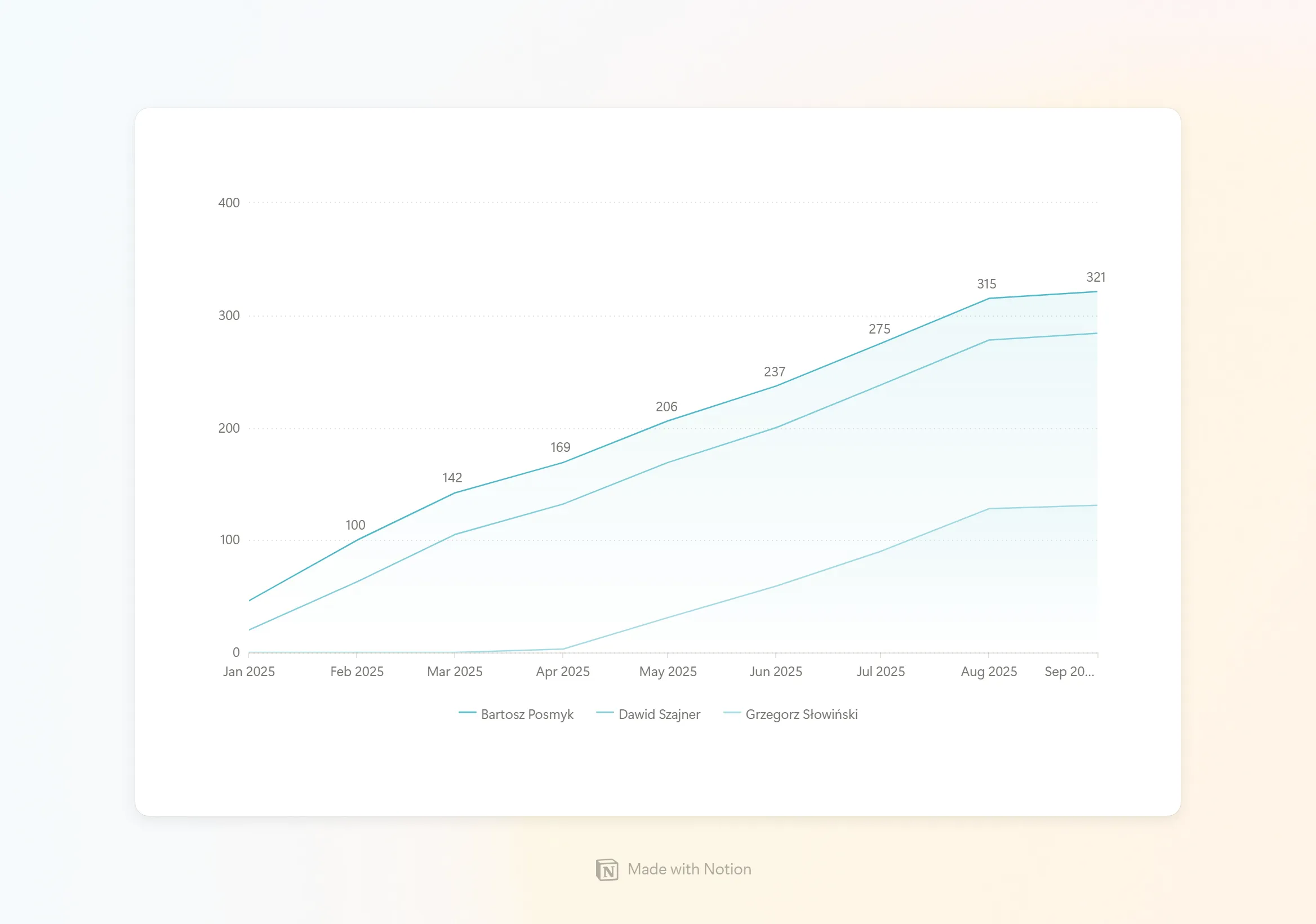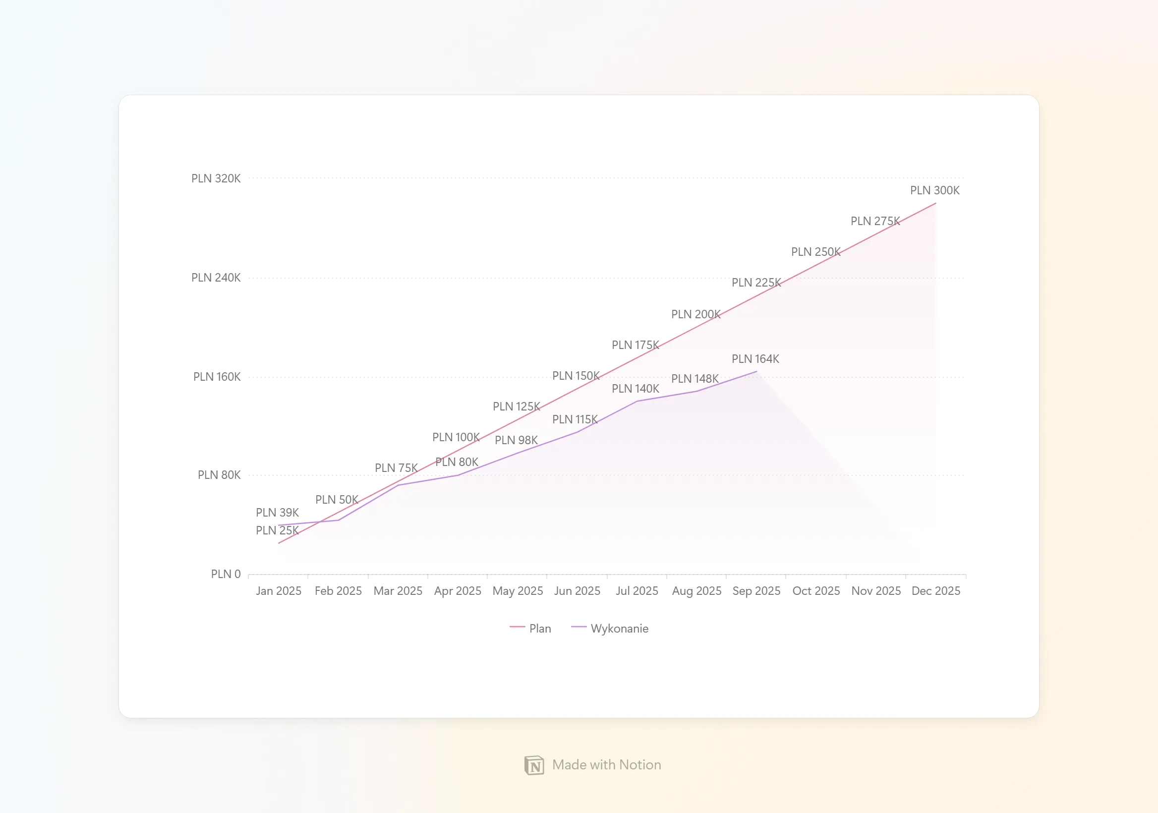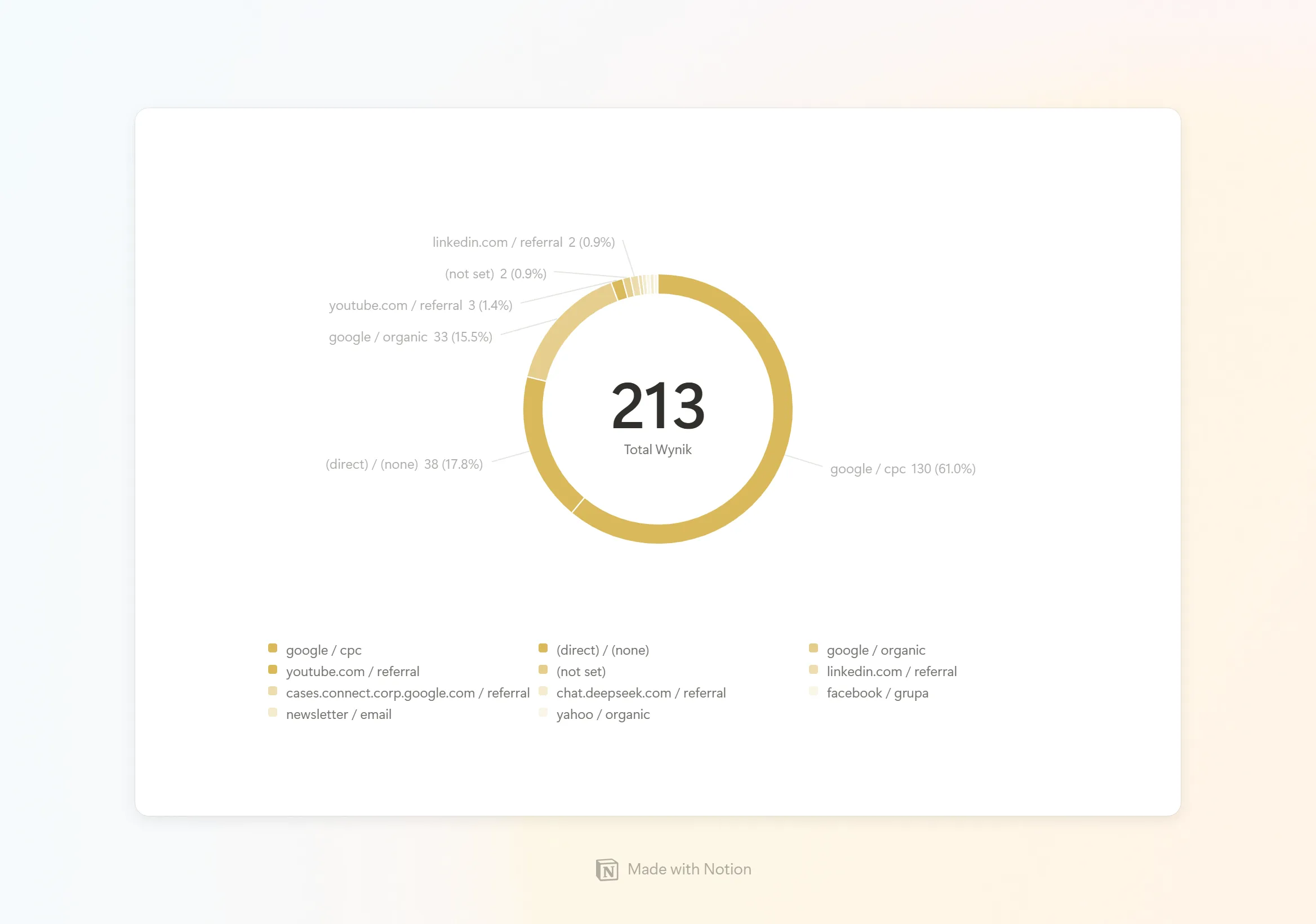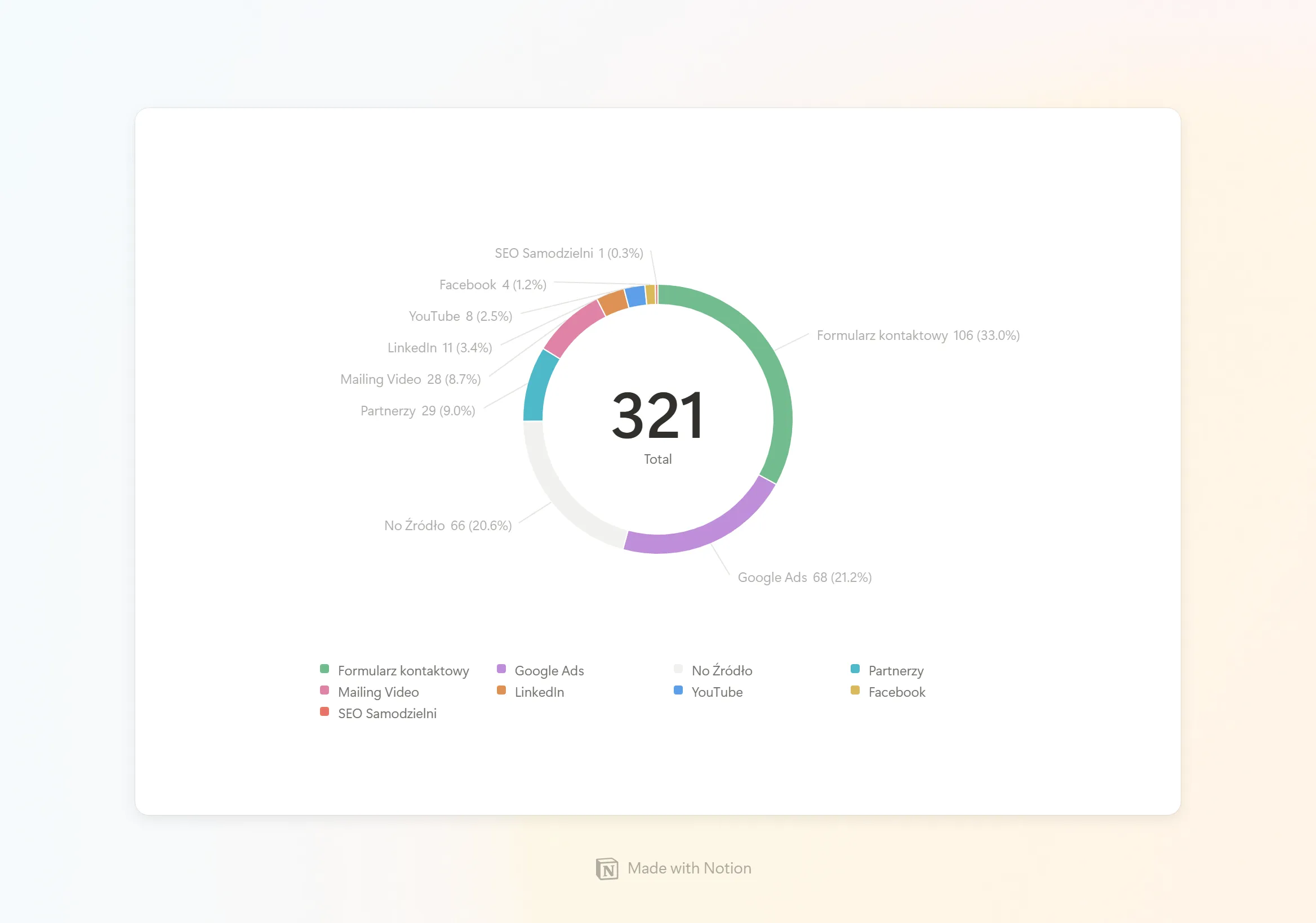 - Dashboard zbudowaliśmy w Notion, integrując dane z CRM i GA.