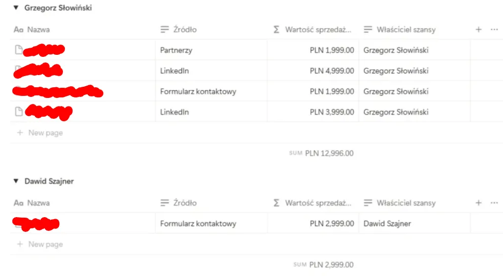 My inwestora nie mamy, więc poszliśmy w wariant „dla siebie” – bardziej operacyjny, codzienny, nastawiony na realną kontrolę pracy działu sprzedaży.