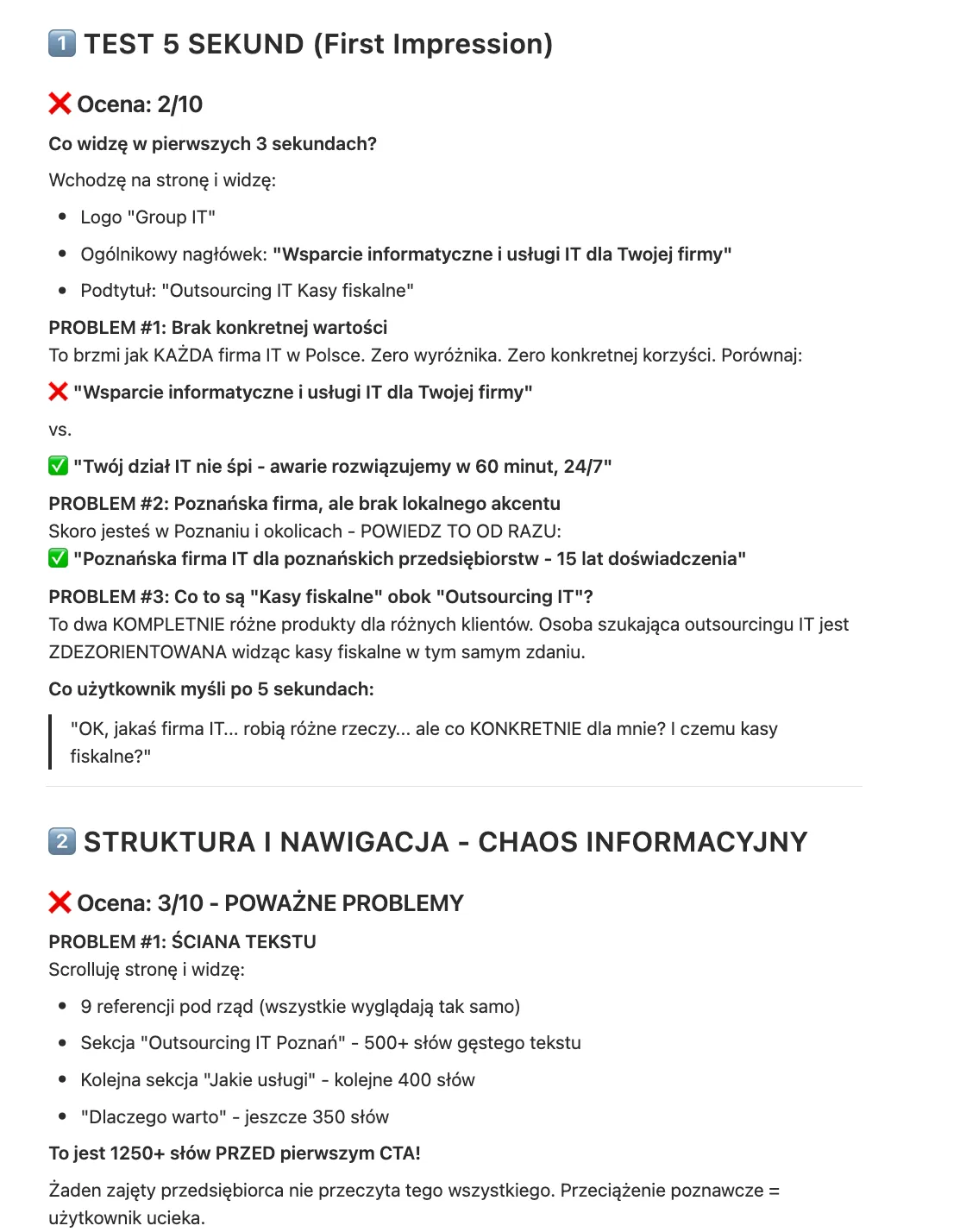 Dzisiaj bardzo często korzystam z narzędzi takich jak Claude do szczegółowej analizy strony. Potrafi on stworzyć naprawdę rozbudowany raport – nie tylko o UX i UI, ale też o tym, jak marka komunikuje się na stronie i czy ta komunikacja jest spójna.