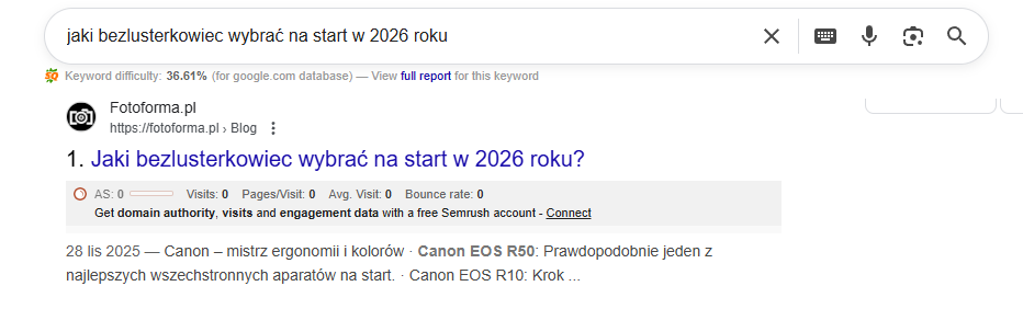 Analiza widoczności w LLM-ach jest dość problematyczna. Odpowiedzi są personalizowane, zmieniają się w czasie i nie da się dziś powiedzieć: „ten artykuł pojawia się w odpowiedziach dokładnie X razy”. Narzędzia takie jak Ahrefs, Senuto, Semstorm czy nawet nasza Yosa próbują to szacować, ale to nadal tylko przybliżenia.