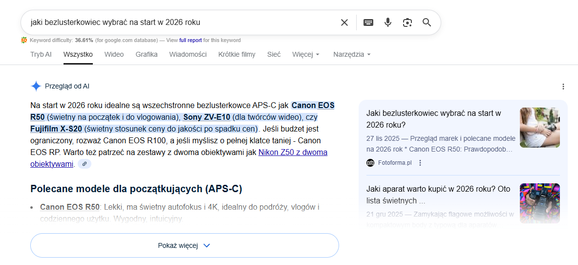 - jakie wątki są kluczowe, żeby tekst miał szansę nie tylko na wysokie pozycje, ale też na wejście do AI Overviews.