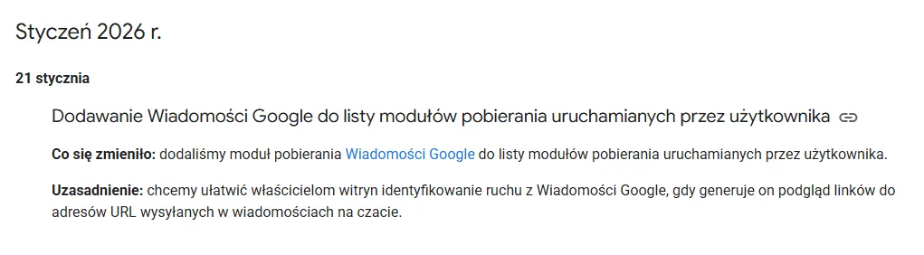 Google dodało opis nowego, technicznego fetchera – Google Messages. Masowe blokowanie botów AI może sprawić, że modele będą opisywać marki na podstawie zewnętrznych źródeł. Google testuje podejście, w którym intencja użytkownika wynika z jego zachowania na ekranie, a nie tylko z wpisanego zapytania. Poza tym: Shopify o Universal Commerce Protocol, a także niesamowita popularność wyszukiwań związanych z ChatemGPT.
